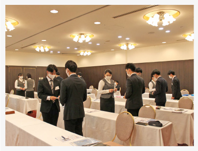 新入社員研修では名刺交換、電話応対など社会人としてのマナーを身につける研修からスタートし、学生から社会人への意識改革を行います。