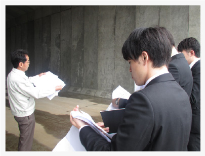 コンクリート二次製品のメーカーとして、製品の製造方法や、各製品の特徴、設計の考え方等基礎的な技術の知識を学びます。