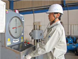 生産時に使う材料の検査、供試体による圧縮強度検査等を行っています。