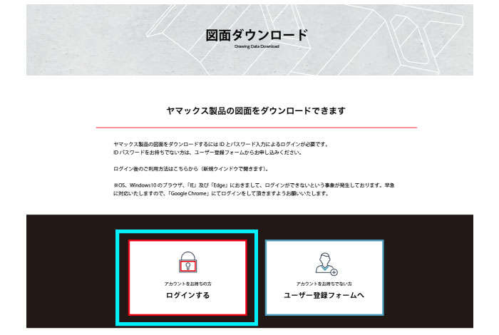 2.「図面ダウンロード」ページが表示されます。