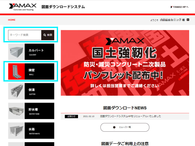 4.ログインすると、図面ダウンロードシステムのトップ画面が表示されます。